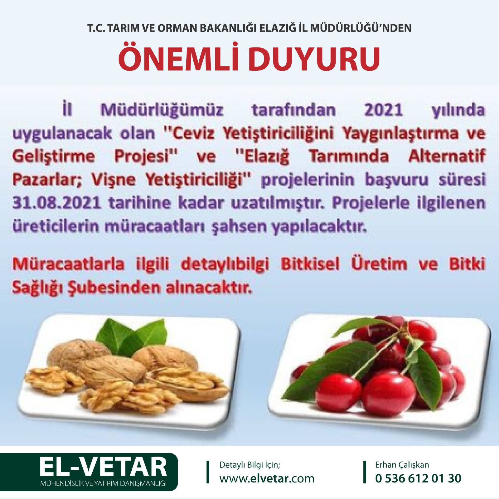 T.C. Tarım Ve Orman Bakanlığı Elazığ İl Müdürlüğünden Önemli Duyuru